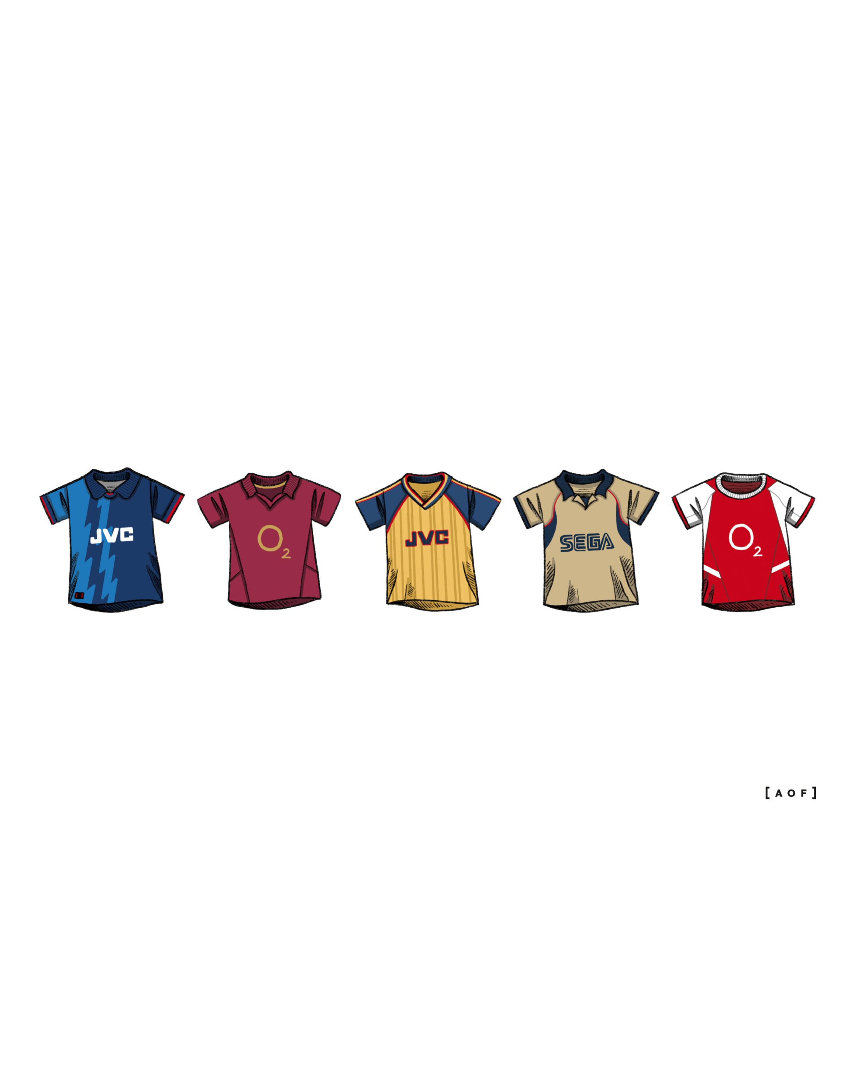 • Design: A collection of classic Arsenal football shirts as requested by Gooner fans.
